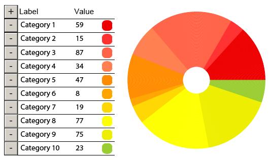 For the data input I use a table and for the pie several hundred bows.