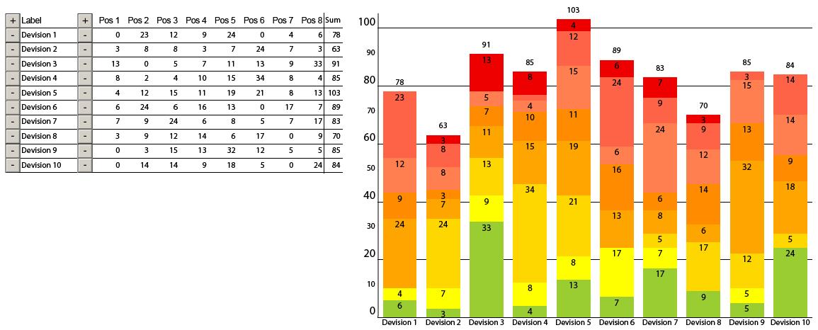 Hier werden nun aus verschiedenen Eingabewerten gestapelte Säulendiagramme generiert.