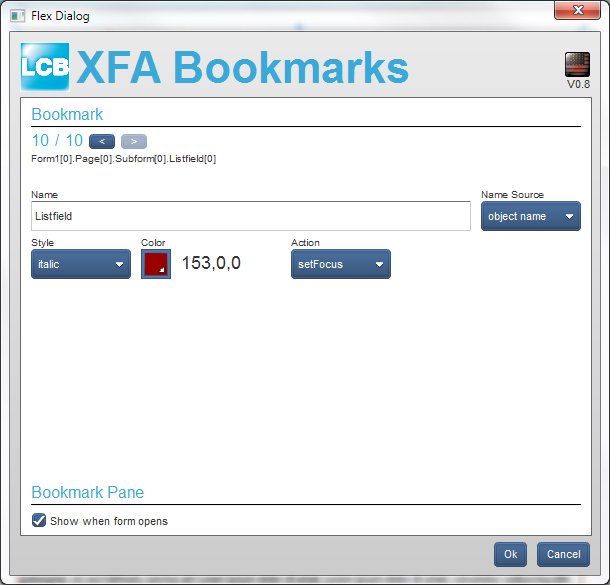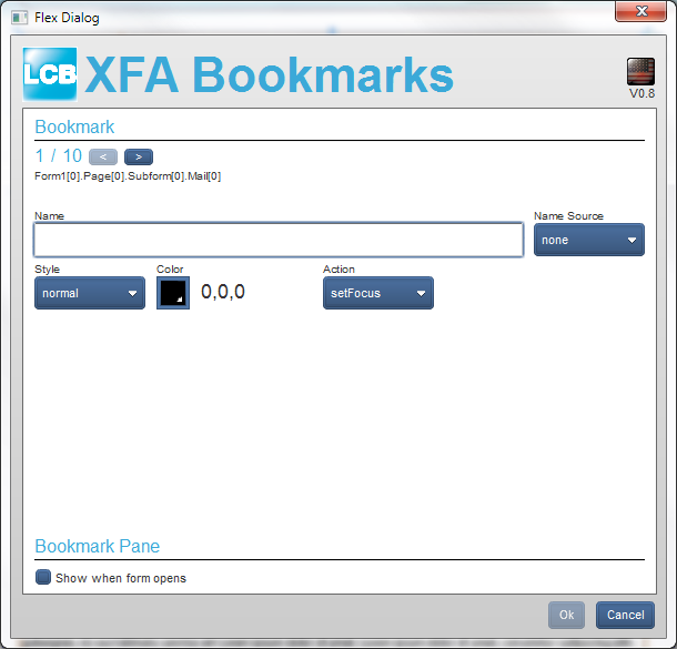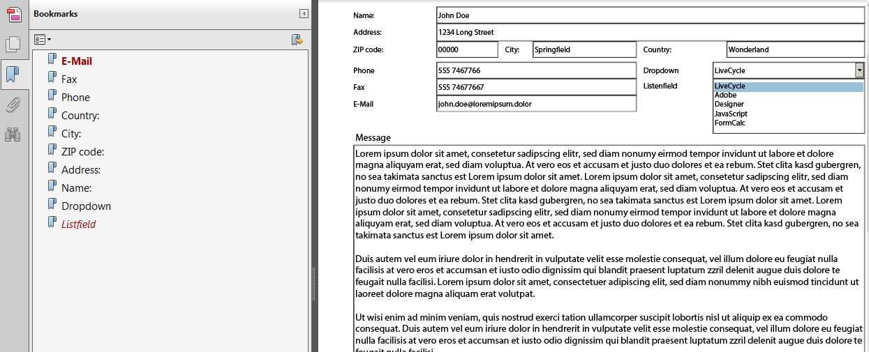 Dabei ist es sehr wohl möglich, Lesezeichen in XFA-Formularen zu erstellen.
