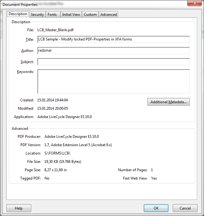 Bei regulären PDF's kann man das schnell mit Acrobat in den Dokumenteigenschaften ändern, aber bei XFA-Formularen ist hier alles ausgegraut.