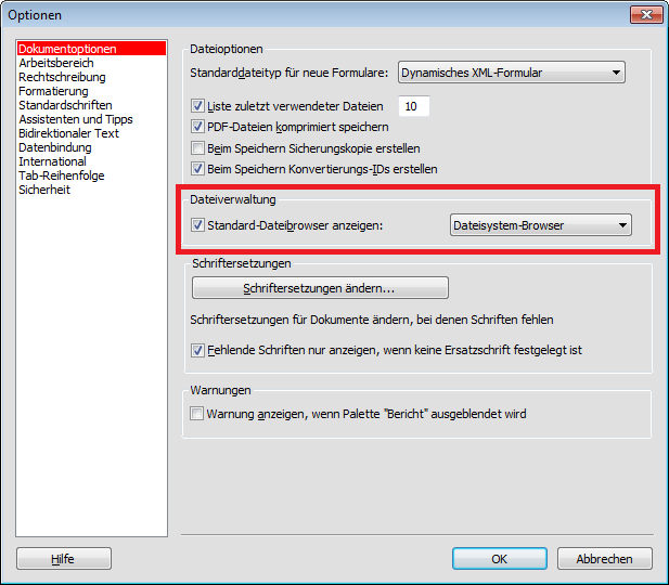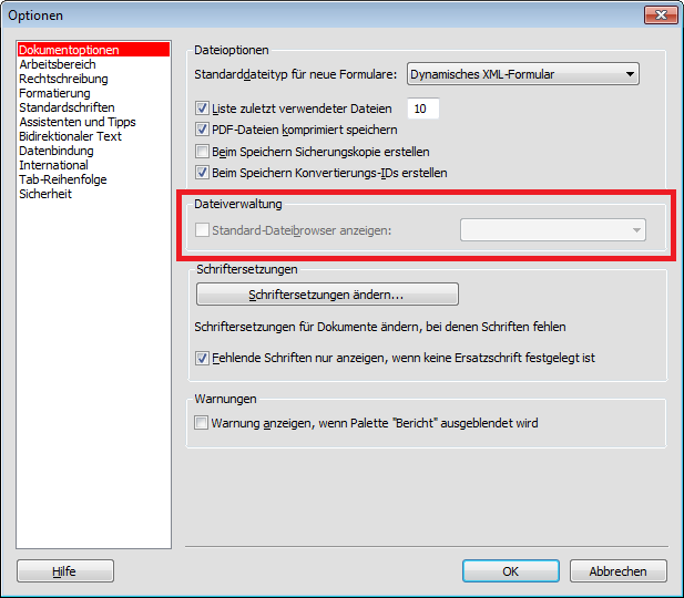 | Fehlender Dateibrowser im Optionen-Dialog // Missing file browser in the options dialog |