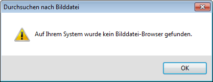 Alles was ich zu Gesicht bekam, war die barsche Meldung: "Auf Ihrem System wurde kein Bilddatei-Browser gefunden.".