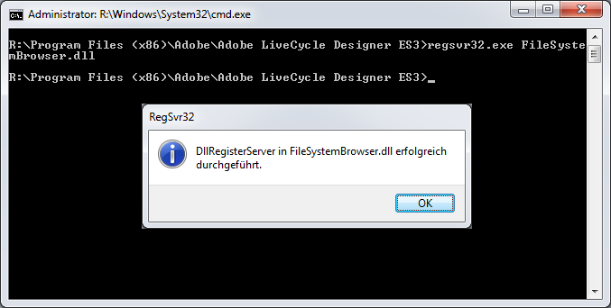 Step 3 – Register the file browser with the command "regsvr32.exe FileSystemBrowser.dll".